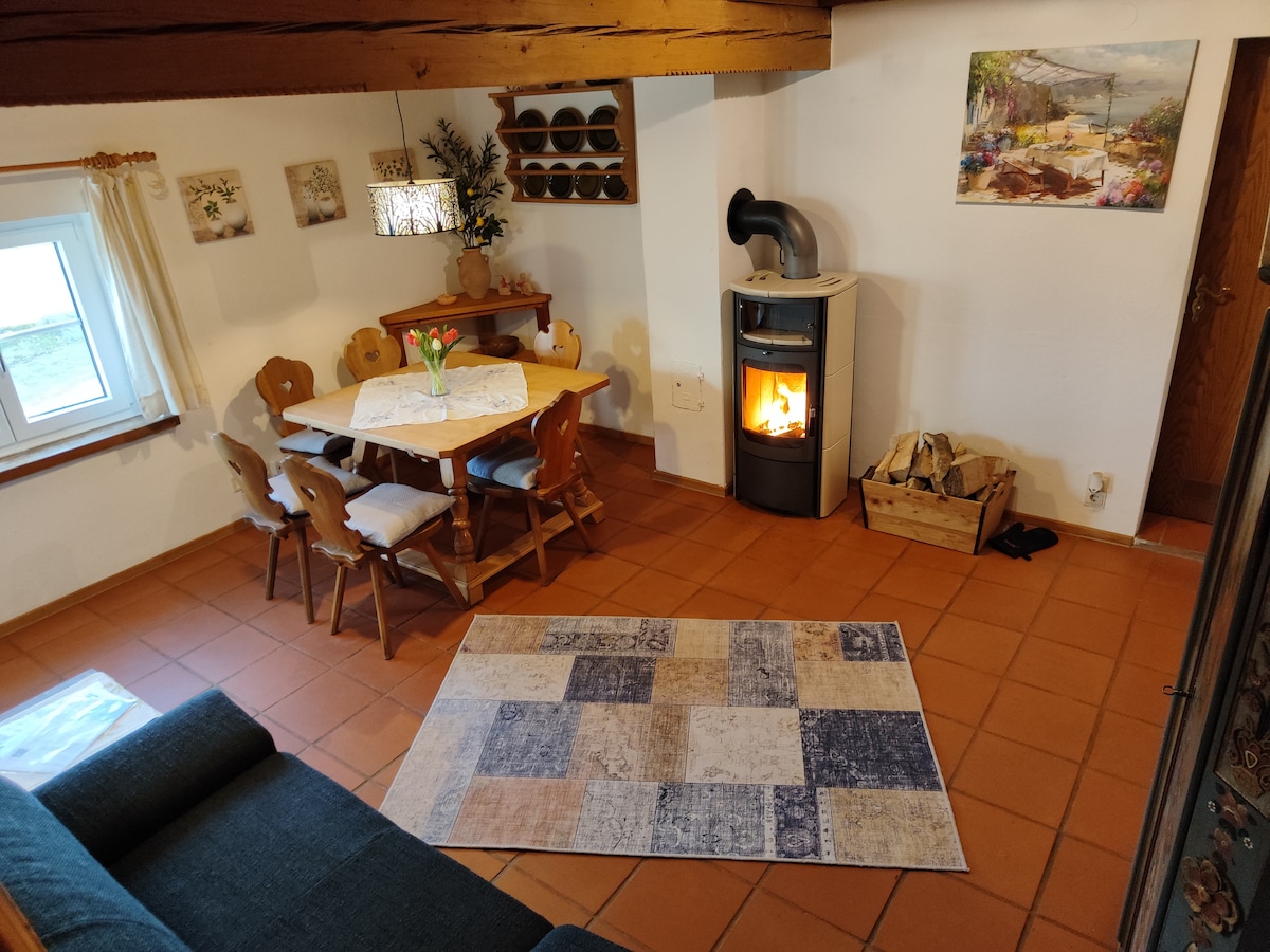 Slap af i denne særlige og rolige bolig. Huset blev grundigt renoveret i 2023. 1. sal single-lejlighed med: minikøkken, sofa som sovesofa, spise- og arbejdsbord + separat badeværelse, møbleret i høj standard og fuldt udstyret. Vaskemaskine/tørretumbler i stueetagen. Rolig og landlig beliggenhed i Niederbayern nær Aldersbach. To smukke siddepladser udenfor ved bageriet er en del af det. Kæledyr er tilladt.