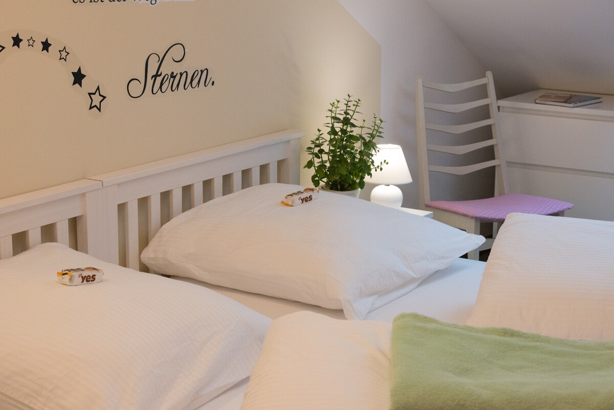 schönes & modernes Zimmer in DG Wohnung in zentraler Lage (Ausbau 2021) im 2. OG •SMART TV & schnelles WLAN, •offener Wohn- Essbereich mit moderner Küche mit allen notwendigen Küchengeräten (Mikrowelle, Cerankochfeld, Backofen, Geschirrspüler, Wasserkocher, Kaffeemaschine (gemeinsam genutzt) •neues Badezimmer mit Dusche, Handtuchtrockner, Waschmaschine und Trockner (gemeinsam genutzt) •neues WC •Schlafzimmer mit je 2 Einzelbetten (0,9x2m)