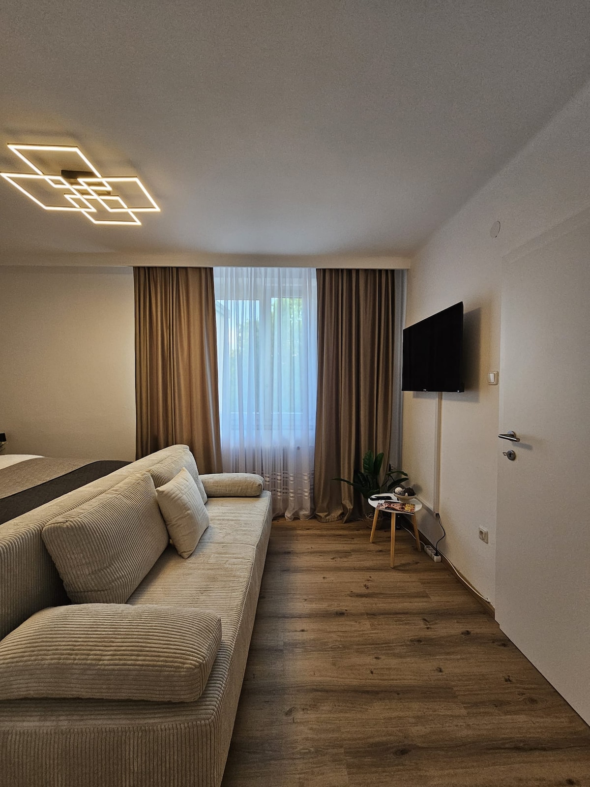 Moderne business-lejlighed 48m² på første sal med tagterrasse. Til forretningsrejser, korte ture, som midlertidig leje og midlertidig overgang ... Til *forretningsgæster* står der et skrivebord og en Wi-Fi-printer med papir og forskellige kontorartikler til rådighed.