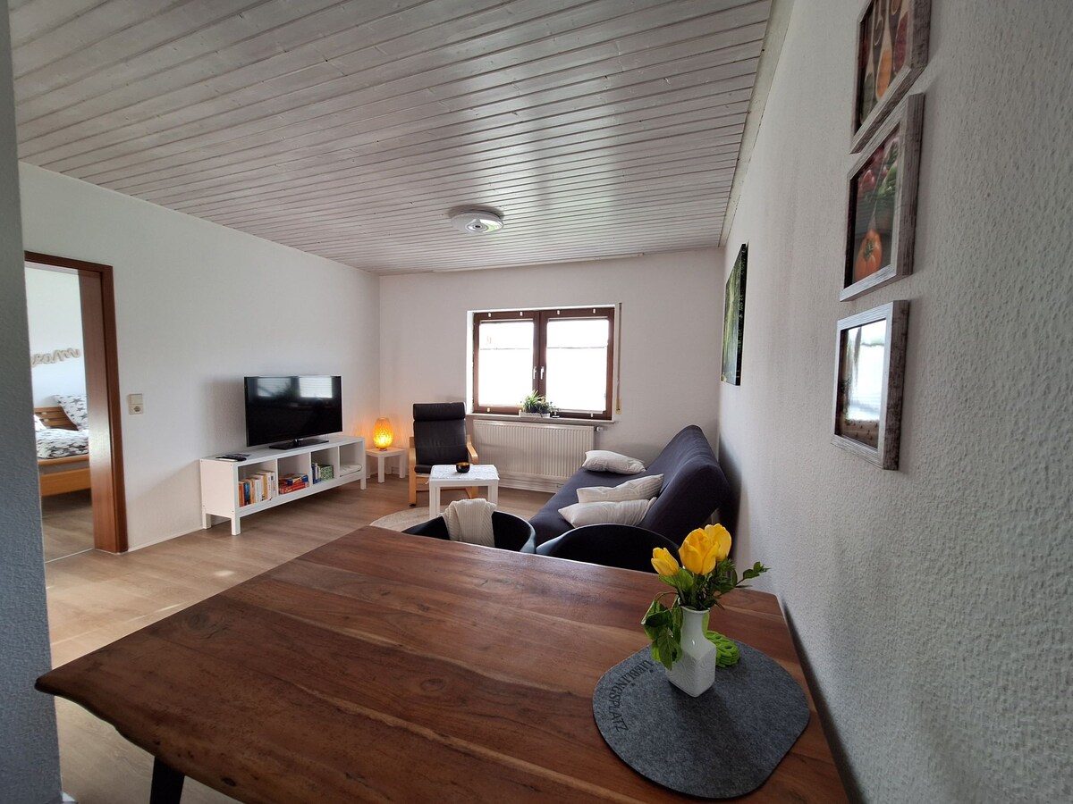 Den hyggeligt indrettede lejlighed med lille tekøkken og balkon i en ny bygning i centrum af den lille by Renhardsweiler - nær kurbyen Bad Saulgau er ideel til overnatning for 2 personer. I Bad Saulgau (7 km) og Bad Buchau (9 km) er der fremragende kurbade med de bedste wellness-tilbud. Der er restauranter i området eller forskellige muligheder i de omkringliggende byer (Bad Saulgau, Bad Schussenried, Aulendorf).