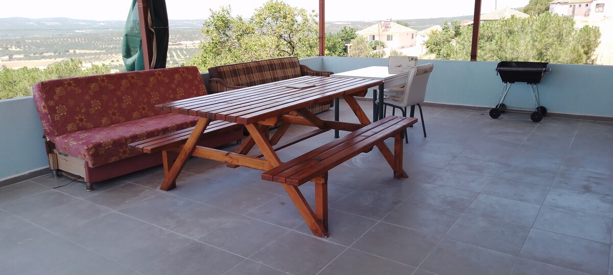 Det er nederste etage i det 4-etagers sommerhus med egen indgang. Om vinteren kan du nyde din ferie med varmesystemet. Der er 3 pladser 2 minutter fra sommerhuset, men da det ligger på bakken, kræves der en bil for at komme til havet. Det er især ideelt til en rolig ferie. Vores sommerhus ligger 10 minutter fra centrum af Çandarlı i bil. Om aftenen kan du få en behagelig aften ved at gå til caféerne eller barerne på stranden i centrum af Çandarlı.