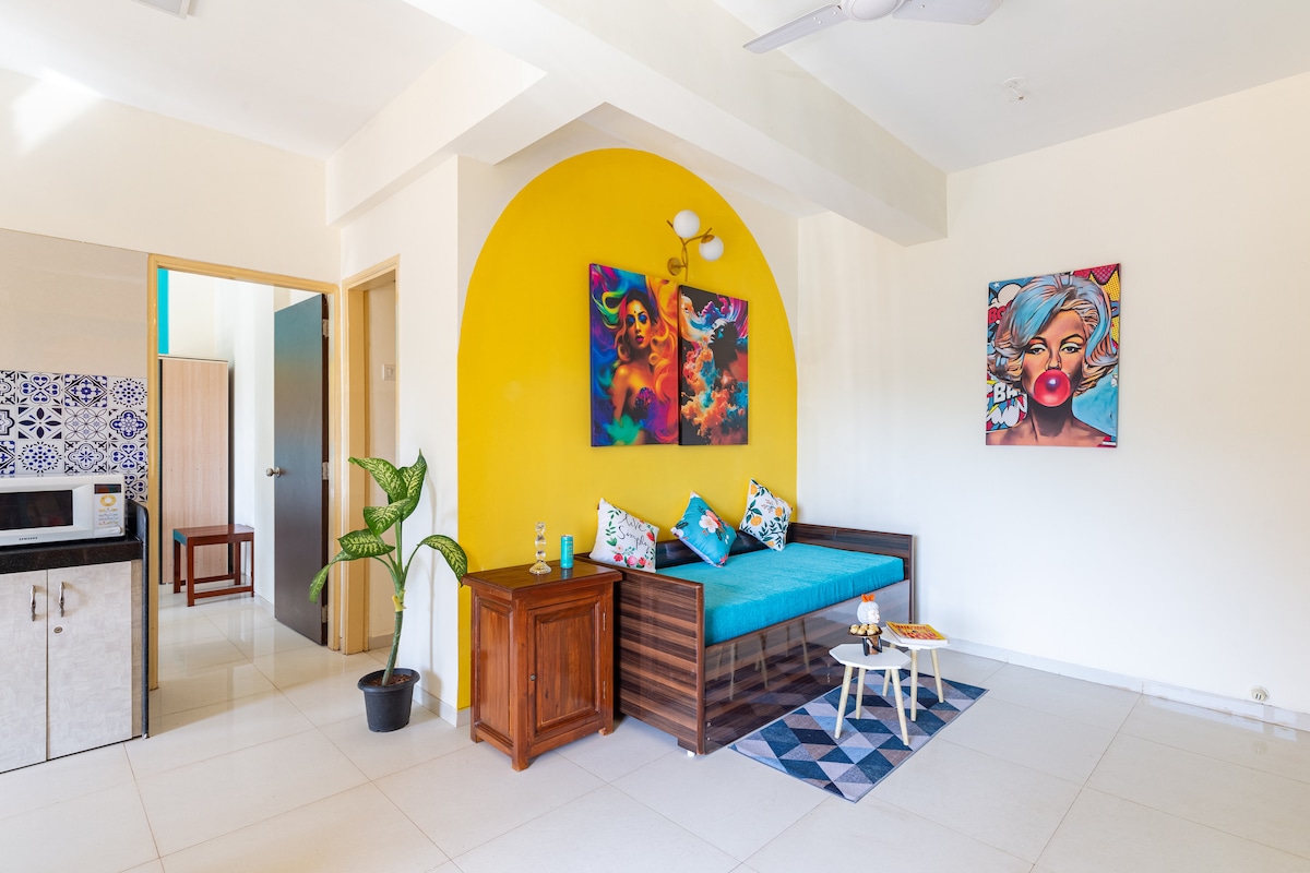 Mellow Mango af Kiwstays | 1BHK nær stranden | Pool