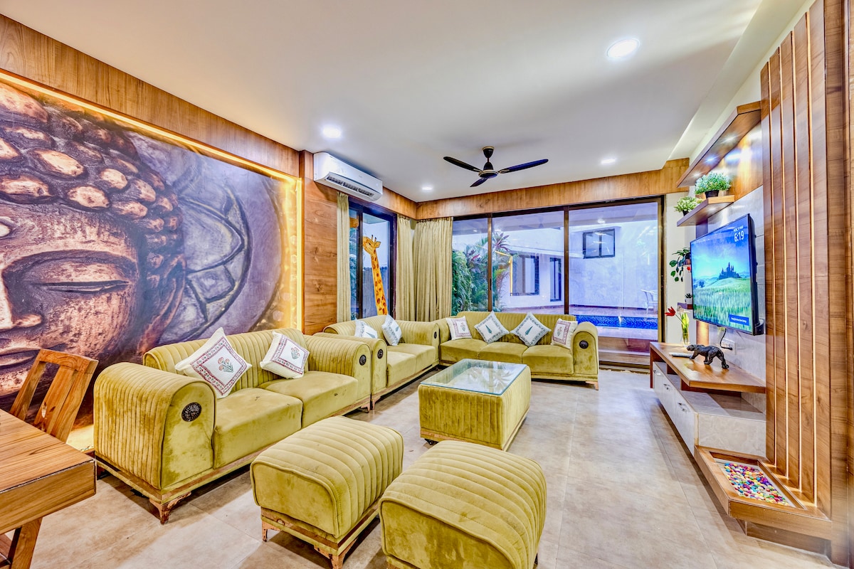 Oplev det ultimative inden for luksus og komfort med denne udsøgte villa med tre soveværelser i Arpora i Goa. Beliggende i et roligt kvarter, men kun en kort køretur fra de pulserende strande og natteliv i det nordlige Goa. Denne villa tilbyder det perfekte tilflugtssted for familier eller grupper, der ønsker at slappe af med stil. Med sin egen private pool med komplet privatliv , frodige haver og moderne design er det dit andet hjem i paradis.