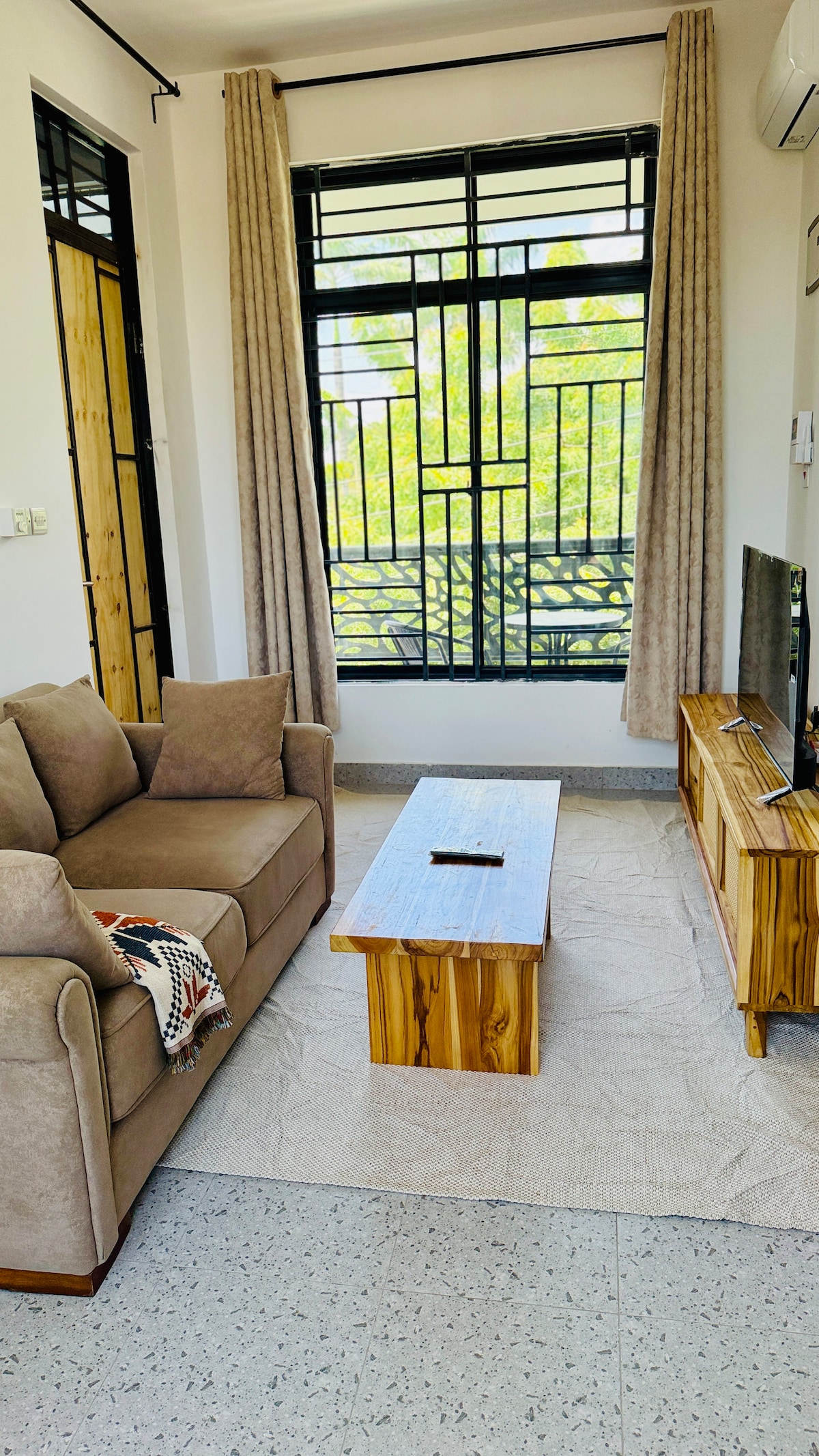 Denne lejlighed med 1 soveværelse og 1 badeværelse ligger i et sikret fælles område med sikkerhed døgnet rundt og ligger kun 1 kilometer fra Bahari Beach. Den er centralt beliggende i nærheden af det populære lokale Nyuki-marked, Kibo Complex Mall og Jambos Supermarket. Fuldt udstyret køkken, lille spiseplads, lille opholdsplads, dejlig have og Wi-Fi. Hæveautomater lige rundt om hjørnet, og der er flere lokale restauranter i det nærliggende område.