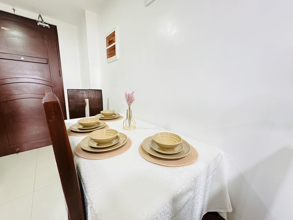 Nyd et afslappende ophold i denne 32 kvm 1BR-enhed på Bristle Ridge Residences, der ligger på toppen af en naturskøn bjergryg i Baguio. Nyd den fredelige udsigt over City of Pines og de omkringliggende bjergkæder, der er perfekte til familier og rolige smutture. Praktisk beliggenhed i nærheden af Wright Park, Camp John Hay, Botanical Garden og Mines View Park. Den tilbyder en hyggelig boliglignende bolig med ubegrænset wi-fi. Bemærk: Tidlig indtjekning/sen udtjekning kan medføre gebyrer. Dette er et ophold i et hjem, ikke et hotel. Kæledyr er velkomne.