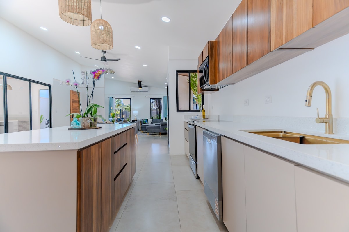 Oplev det bedste af indendørs- og udendørsliv i vores moderne bolig med 2 soveværelser/2 badeværelser med skydedøre i glas fra gulv til loft, en privat pool med minivandfald og en naturfyldt bæk, der er fyldt med dyreliv og ro. Denne rene og familievenlige bolig tilbyder privatliv og sikkerhed. Det er bekvemt beliggende for enden af en vej. Den centrale beliggenhed ligger et par minutters gang fra Uvitas bymidte, og smukke strande ligger kun 5 minutter i bil derfra.