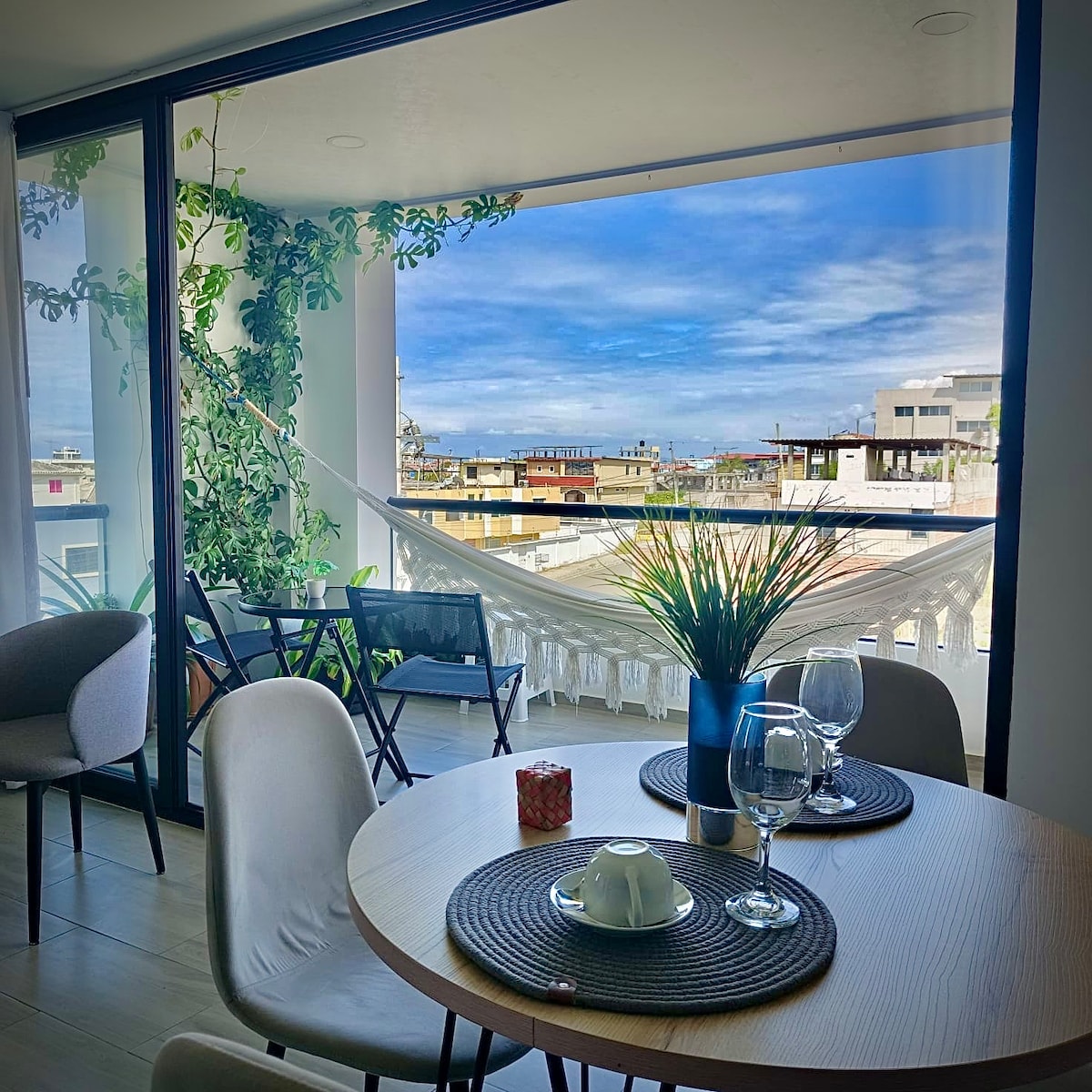 Velkommen til din drømmesuite i Santa Marianita. Oplev et uforglemmeligt ophold foran den bedste strand i Manta. Fra din private balkon kan du nyde gyldne solopgange, lyden af bølger og perfekte solnedgange. Et par skridt fra sandet, ideel til kitesurfing, gåture på sandet eller bare til at koble fra. Her giver havet dig ro, skønhed og uforglemmelige øjeblikke.