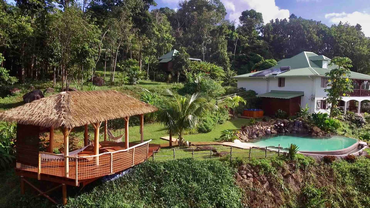 Habitation Melipone, en charmerende 4-stjernet solrige ECOLOGIE, byder dig velkommen i udkanten af Guadeloupes nationalpark, kun 10 minutter fra strandene. Noël og Anne-Laure, der er åbne og generøse biavlere og vaniljedyrkere, byder dig velkommen i de ekstraordinære omgivelser på deres ejendom, der har en betagende udsigt over havet og bjergene. På 370 m højde kan du nyde friskheden og komforten i villaen med dens 120 m² terrasse, 140 m² beboelsesareal, swimmingpool og jacuzzi med udsigt