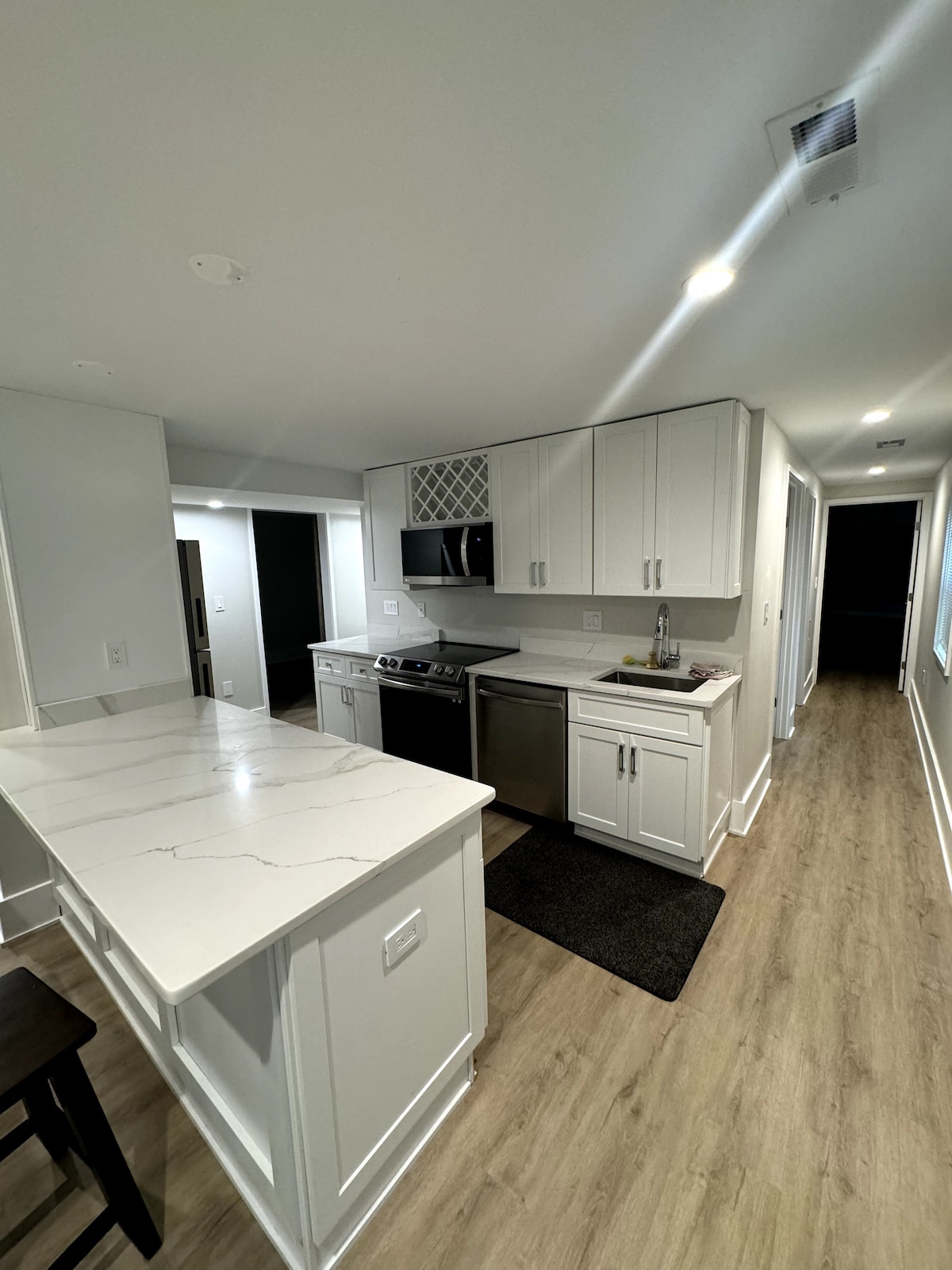 Denne nyrenoverede private suite er perfekt indrettet til at være dit hjem væk fra hjemmet. Med et helt nyt specialfremstillet brusebad, nyt vaskeri, komfortable møbler og et smart arbejdsområde er denne bolig fantastisk til rejsende sygeplejersker eller læger, besøgende familie i området eller praktikanter, der er her for nye muligheder i vores lands hovedstad. BEMÆRK: Selvom denne bolig kan rumme op til 6 gæster med brug af en queensize luftmadras, er det anbefalede maksimale antal gæster 4. Hver gæst ud over 4 koster 25 dollars per nat.