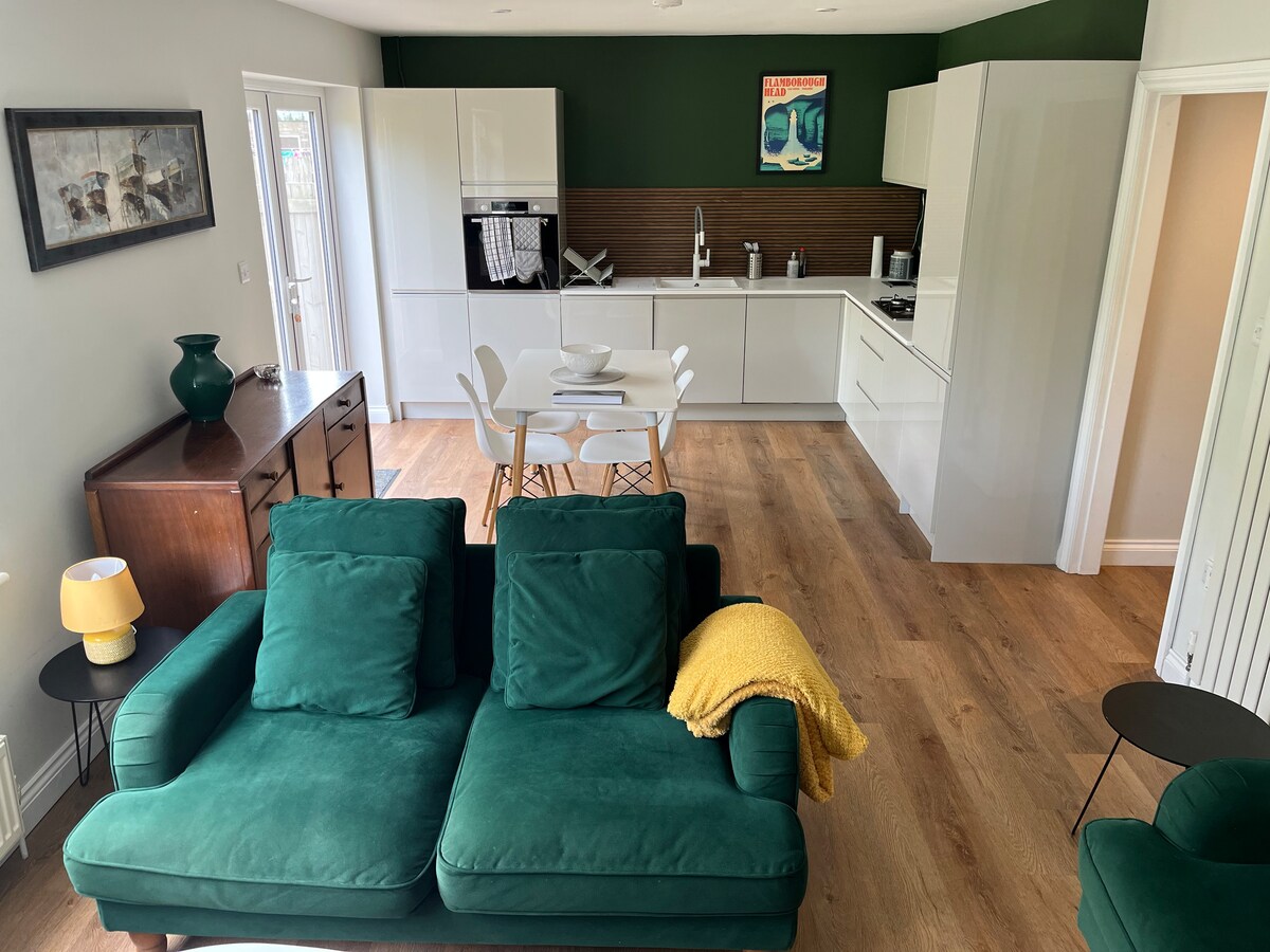You’ll treasure your time at this memorable place. A modern Two bedroom oasis with wonderful outdoor space for socialising and relaxing and comfortable interior. Lovely walks close by and a short drive from the coast. The village boasts a pub, village store and post office, farm shop and butchers. With an impressive and rare village green with children's play area. Private parking. bus and trains run regularly from coast to city where there is a huge range of entertainment and attractions.