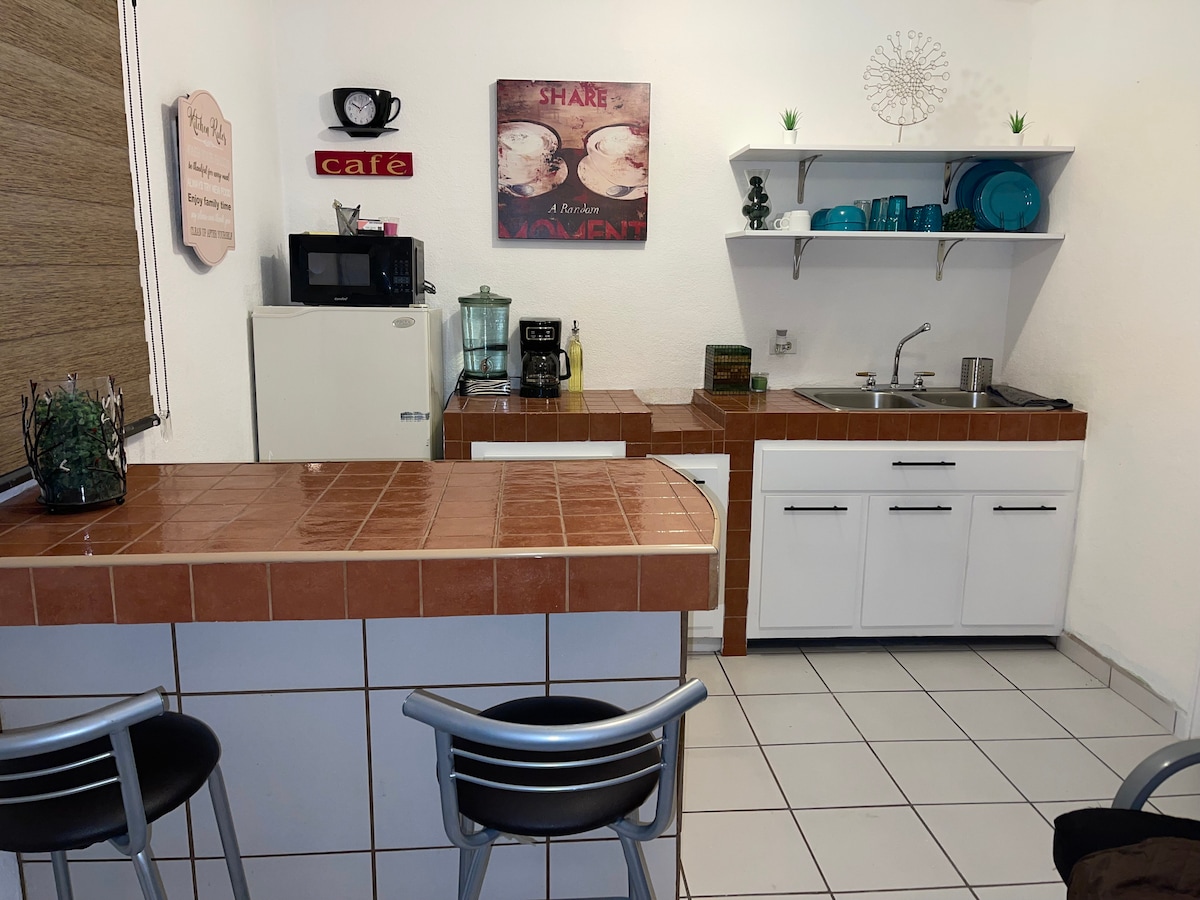 Slap af i denne rolige og elegante bolig. Med alle de private faciliteter såsom køkken, stue, soveværelse, badeværelse, vaskemaskine, (fælles tørretumbler) privat indgang, allerede installeret, kan du ankomme når som helst, besøg accepteres, det er lille, men meget komfortabelt og rent, 15 minutter fra lufthavnen og 20 til USA's grænsekontrolposter, 5 minutter fra indkøbspladser, såsom Macroplaza, Monarca, Museo del Trompo, Parque Morelos og restaurantområde. Familieatmosfære, det er ikke lejet som et motel☺️.