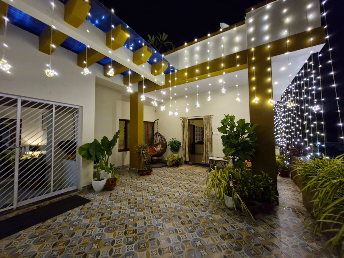 Hvor historierne hænger i væggene, og freden blomstrer i haven ... Asha Brindavan er ikke bare et hjem – det er et roligt fristed omgivet af kulturarv og natur, en sjælfuldt bevaret 45 år gammel forfædrevilla i det spirituelle hjerte af Bhubaneswar, Odisha. Denne fredfyldte bolig med tre soveværelser, der engang var hjemsted for Asha og Brindavan – værternes bedsteforældre – er gennemsyret af varme, tradition og naturens omfavnelse.