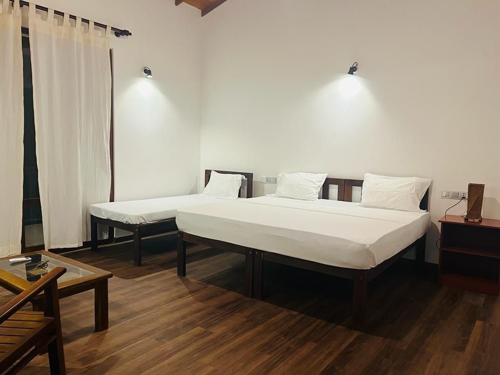 Amaroo ligger lige i centrum af Hikkaduwa Beach. Det emmer af en afslappet atmosfære, og vores haveværelser er det perfekte sted at hvile og slappe af. Værelserne er udstyret med komfortabel queensize-dobbeltseng, pengeskab, udendørs bruser (forvent insekter) og aircondition. Du kan også rulle ud af sengen og være på stranden på 30 sekunder. Der serveres gratis morgenmad på stranden hver morgen. Bemærk, at disse værelser ligger i stueetagen. Der er ingen havudsigt fra værelset.