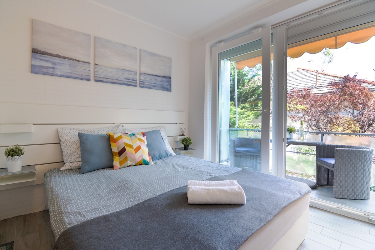 Læn dig tilbage, og slap af i denne nye, perfekt udstyrede, stilfulde bolig og rummelige have. Sparkling Apartment er et roligt, naturvenligt og diskret hjem, hvorfra du kan nå centrum af Balatonfüred og kysten af Balatonsøen på få minutter. Perfekt til vandrere og cyklister. Trapperne op til galleriet er stejle, så kom med børn, der endnu ikke kan klatre eller gå på trapper sikkert. Jeg tilbyder en rejseseng, babybad, skifteunderlag og høj stol til babyer.