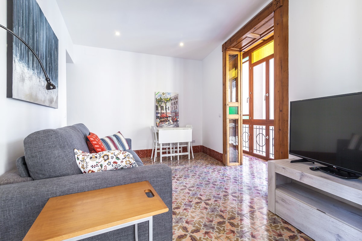 Dejlig og fuldt udstyret 60 m² lejlighed i Palmas gamle bydel med 1 soveværelse, fladskærms-tv, privat badeværelse med gratis toiletartikler, wi-fi, køkken, adgang til fællesterrassen og gratis parkering. Den har en maksimal kapacitet på 2 personer. Ejendommen ligger 100 m fra Plaza Mayor, 1,1 km fra Palma Yacht Club, 2 km fra Playa Can Pere Antoni sandstrand, 6 km fra Cala Mayor klippestrand, 600 m fra Mercadona supermarked, 600 m fra mercado del Olivar supermarked.