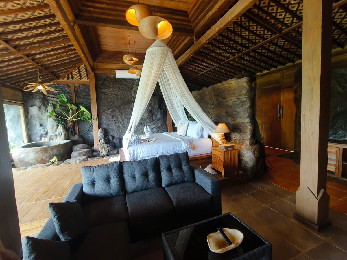 Immerse yourself in the true essence of Bali. Perched on the foot hills of Mt Batukaru and surrounded by 4 Mountains starring right back at you day and night. Live in a 70+ year old Javanese Gladak amongst the rainforest. Our property will feel like you are co-existing with nature in every way, surrounded by trees, wildlife, mountains and valleys. Explore the beauty of Jatiluwih 700+m above sea level and endless activities to explore.