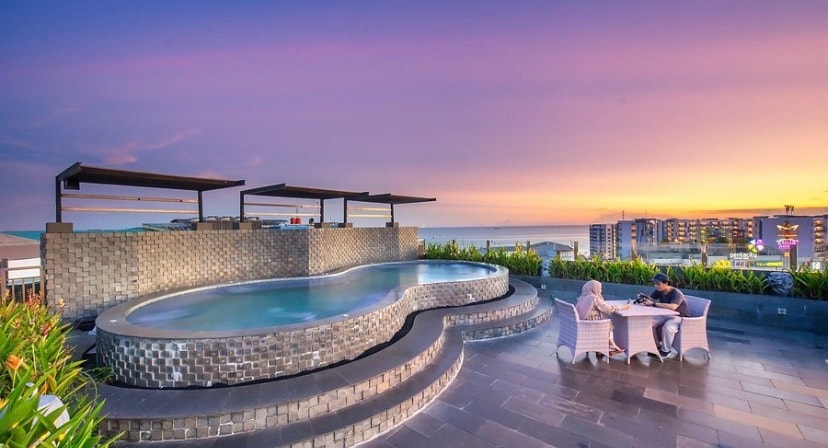 Faciliteter til studiolejligheder: • Køkkenredskaber • Spiseredskaber • Toiletartikler • Riskoger • Vandbeholder • Tv-kanal Indihome • Iflix og Catchplay • Køleskab • WiFi • Fuldt airconditionrum • Vandvarmer • By- og strandudsigt Generelle faciliteter: • Swimmingpool for voksne og børn • Løbebane • Legeplads • Fitnesscenter • Sauna • Jacuzzier