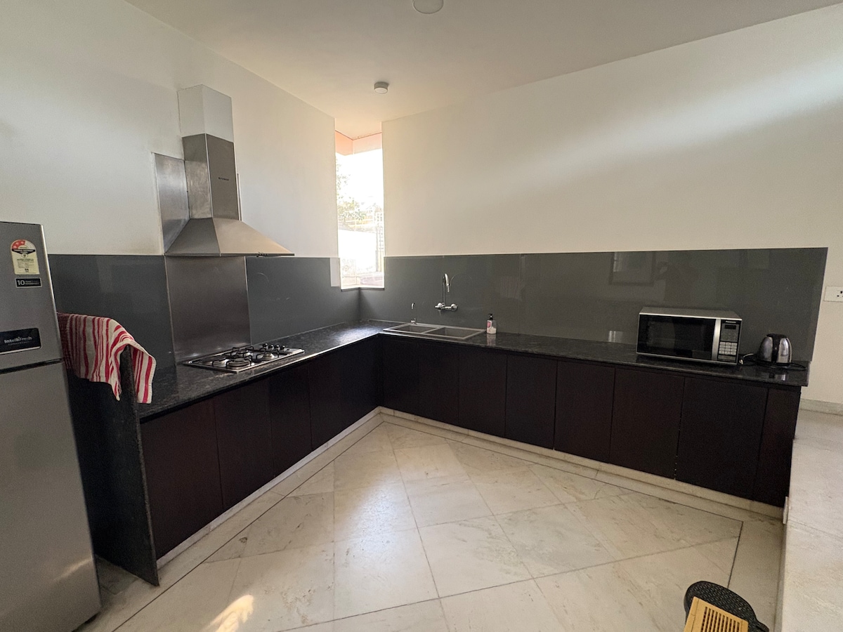 En moderne, rolig og upåklageligt holdt 2BHK-lejlighed i det sikre og fredelige Shantigram-samfund. Denne lejlighed er designet med en ren, lys og luftig æstetik og tilbyder overlegen komfort og bekvemmelighed for familier eller grupper (op til 4 gæster). Dit uberørte ophold omfatter: *To soveværelser med queensize-dobbeltseng * Nyd perfekte temperaturer med 3 AC-enheder i opholdsområde og soveværelser *Fuldt udstyret køkken * Moderne faciliteter: Vaskemaskine og lynvarmere til varmt vand på begge badeværelser *Wi-fi