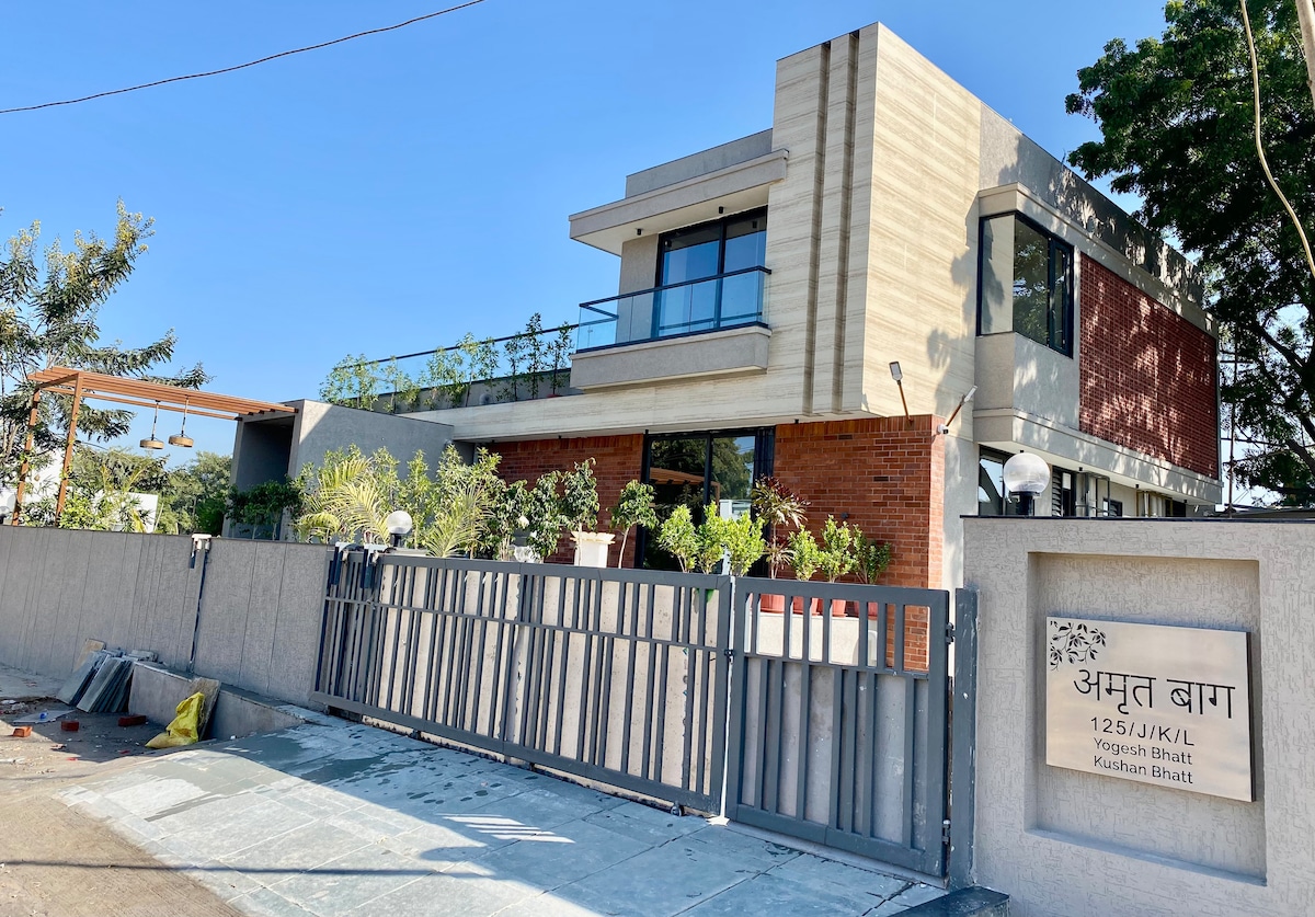 Denne fredfyldte bolig er designet specielt til et pensioneret par med unik opmærksomhed på behovene hos både konen, en forfatter og hendes mand, der er involveret i medierne. Villaens design ligger i den fredelige sektor 8 i Gandhinagar og er omgivet af et Mangotræ, der symboliserer både naturen og roden. Perfekt til opgøret mellem GT og RR den 4. april. Undgå hoteltrængselen, og overnat på Basu Villa, der kun ligger en kort køretur fra Narendra Modi Stadion.