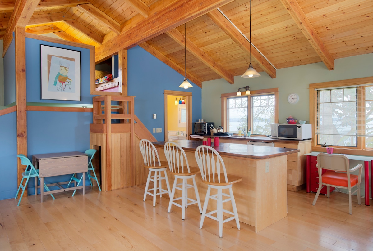 Vores magiske atelier ligger tæt på centrum af Greenwood og har nem adgang til transport overalt i byen (busstoppesteder ligger inden for gåafstand). Der er en biograf, købmand, smuk kaffebar og et par restauranter mindre end 1,5 km væk. Du vil elske de overdimensionerede vinduer og stilfulde æstetik (alle trævægge, indbygget lys og poleret cementgulv). Vi har sørget for smukt sengetøj, personlige detaljer og et rent logi, så du kan nyde din tid i denne perfekte base i Seattle.