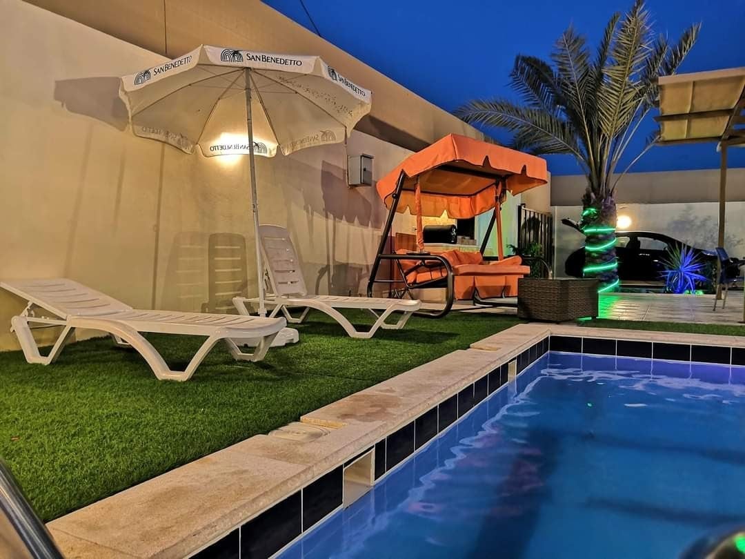 i Amman på ferie? Se denne meget fine 110 kvm private lejlighed med privat indgang, 3 store soveværelser og meget hyggelig stue, stort fuldt udstyret køkken, meget fin privat have med grillfaciliteter, super hurtig fiber internetforbindelse med tilsluttet playstation og 60 tommer fladskærm, netflix, youtube, 2000+ tv-kanaler og så videre. Lufthavnsvej og største supermarkeder, barbar butikker, apoteker, vaskerier, du navngiver, alle er kun få minutters gangafstand.