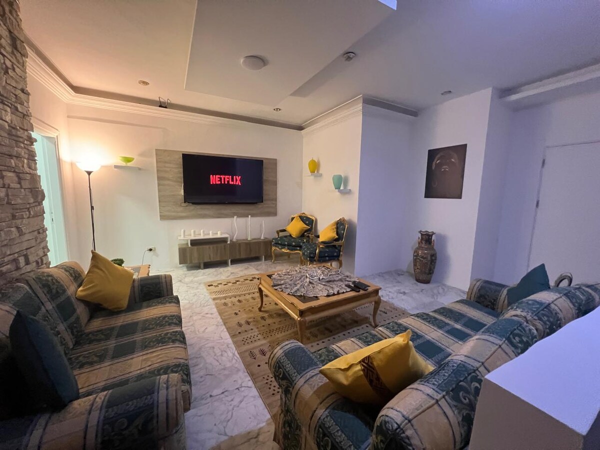 Enjoy a stylish stay with all utilities included. The apartment features high-speed Wi-Fi, a fully equipped kitchen, and a comfortable living area with 3 bedroom , 3 bathrooms , 2 living areas. Perfect for families, with amenities to make you feel at home. I'm always available to assist during your stay. I can also send you a video of the entire place. The whole group will enjoy easy access to everything from this centrally located place. Book now for a convenient and luxurious experience!