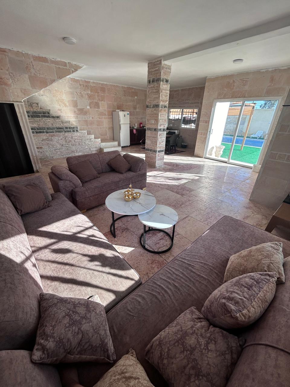 private chalet in Deadsea area nice home to spend a nice time with family 2 bed room double bed 2 single sofa bed matresses private pool outdoor dining area cozy furniture full kitchen , and more