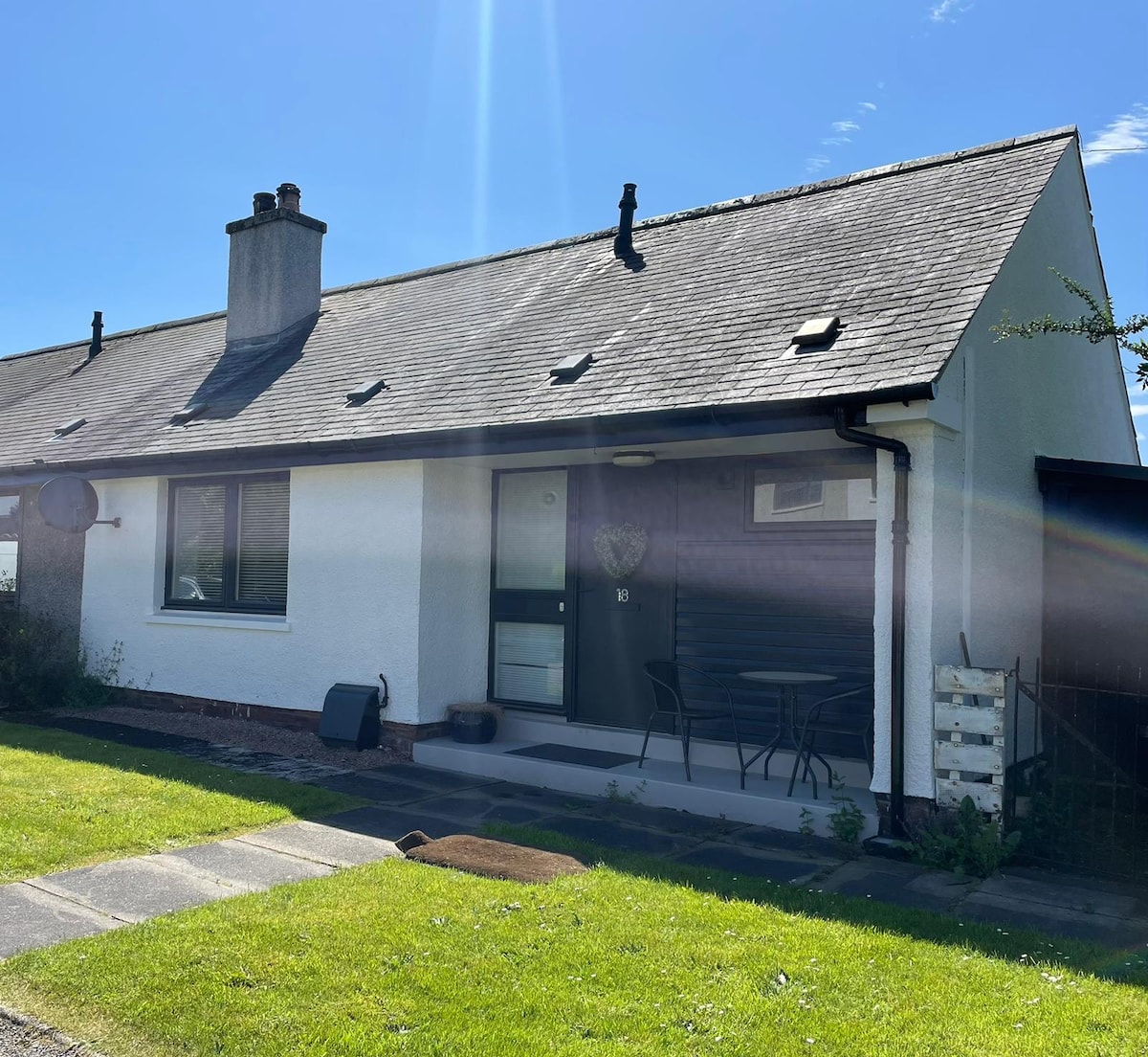 Cosy bungalow in nice wee village; shops and train/bus routes. The Ground floor is included in this listing; upstairs is kept for storage. One double bed only, the listing says one bed in lounge, only sofas but I can’t correct this… There is a covered deck out the back door, great for sitting out in the rain! Good base for access to rest of NW Scotland; on the edge of the NC500, 14 miles from Inverness. Please read the house manual; note this is a quiet street and not a party house..