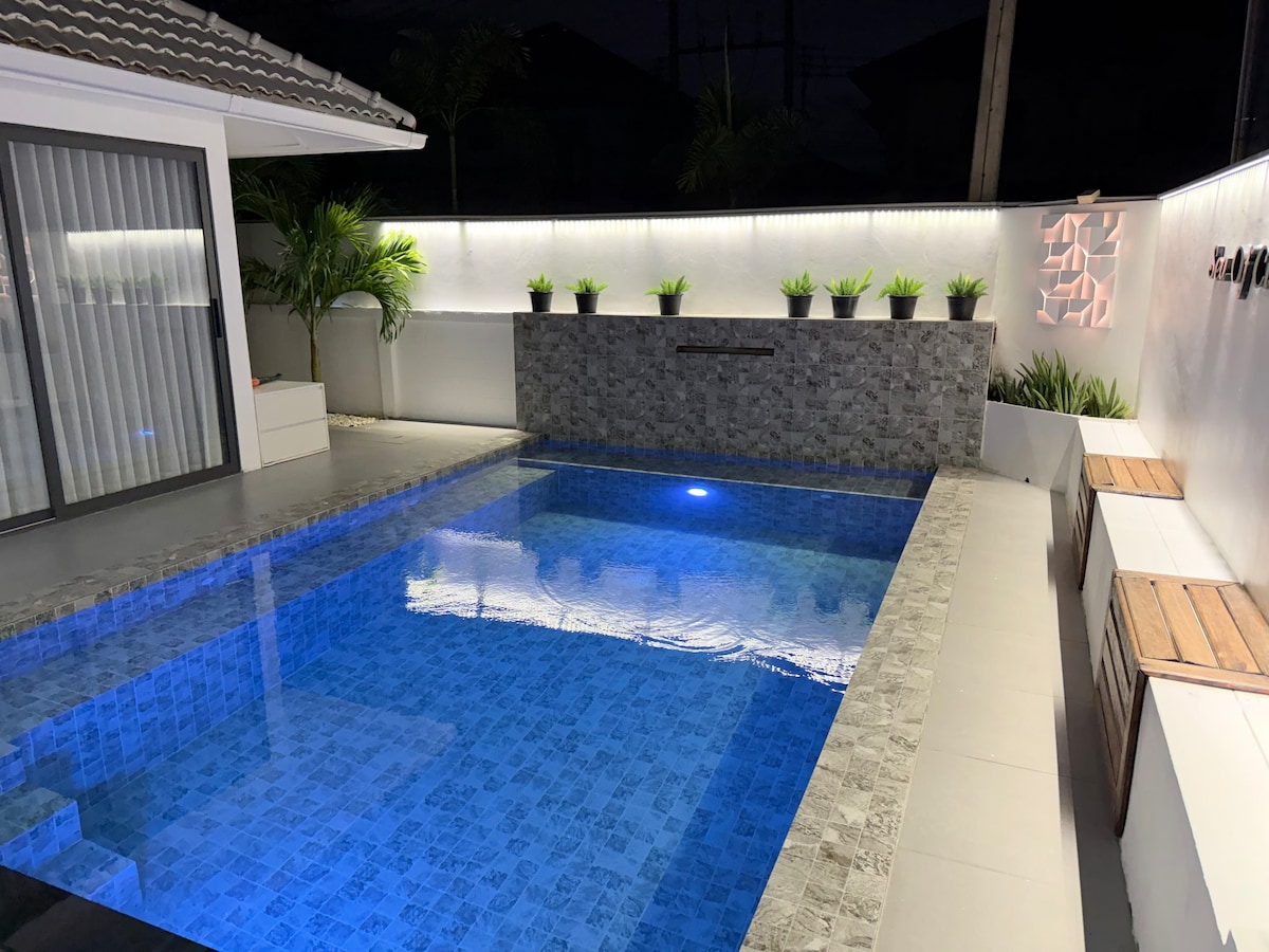 R3 hyggelig og romantisk villa med pool, tæt på havet, 800 meter til Zhongtian strand, i det sikre og velkendte EK mongkhon-område