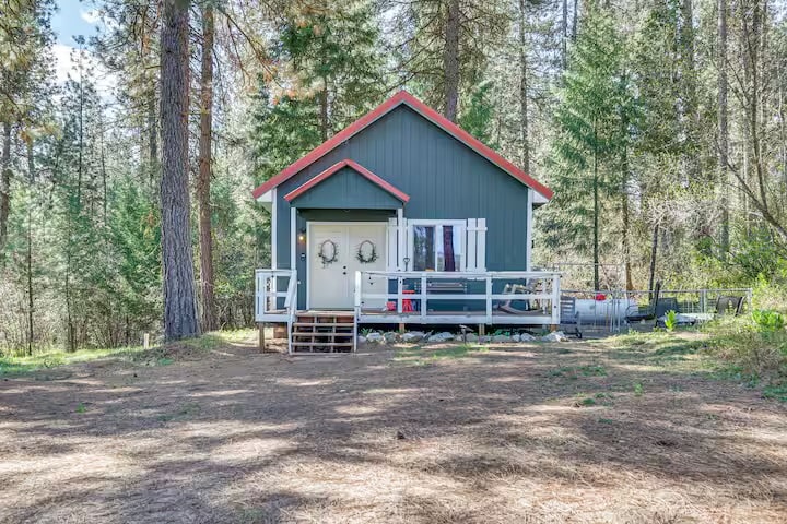 Tag på en udflugt til et håndlavet fristed blandt tårnhøje Ponderosa-fyrretræer. Dette eksklusive lille trætopshus, der er omhyggeligt designet over to et halvt år, har et majestætisk træ, der med rette hedder Mondo Pondo, der yndefuldt krydser boligen og udvisker grænsen mellem inde og ude. Rummet er badet i naturligt lys og skaber en hyggelig og ren atmosfære, der inviterer dig til at slappe af og komme i kontakt med naturen igen. Perfekt til romantiske ferier eller en fredfyldt flugt fra hverdagen.