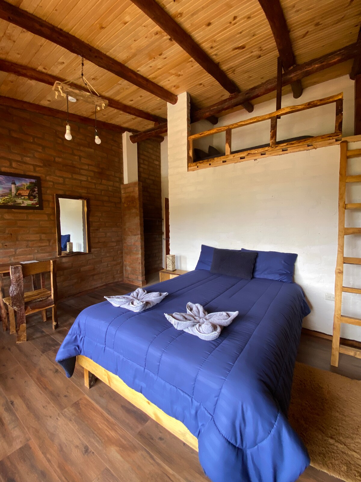 Inviting double room ideal for travelers who want comfort without overspending. Bathroom is shared and kept exceptionally clean. Guests enjoy access to wide-open grounds, rustic design, relaxing common spaces, and convenient parking. Close to Baños’ most popular destinations while offering a peaceful retreat surrounded by nature.