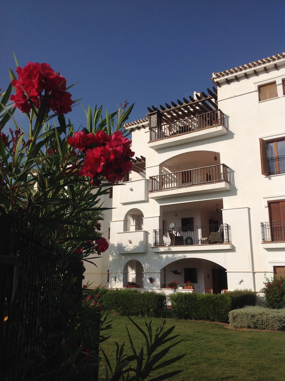 Nyd denne lyse og hyggelige penthouse-lejlighed på 145 m2 med en unik beliggenhed i boligområdet Alhambras I i Altaona Golf. Ideel til at tilbringe weekenden eller ferien. Boligen ligger på 1. og 2. sal i en bygning med elevator, med en spektakulær udsigt over swimmingpoolen, golfbanen og bjergene STRATEGISK BELIGGENHED: - 10 minutter fra lufthavnen i Murcia-regionen - 15 minutter fra Murcia centrum - 22 minutter fra Cartagena - 20 minutter fra strandene ved Mar Menor