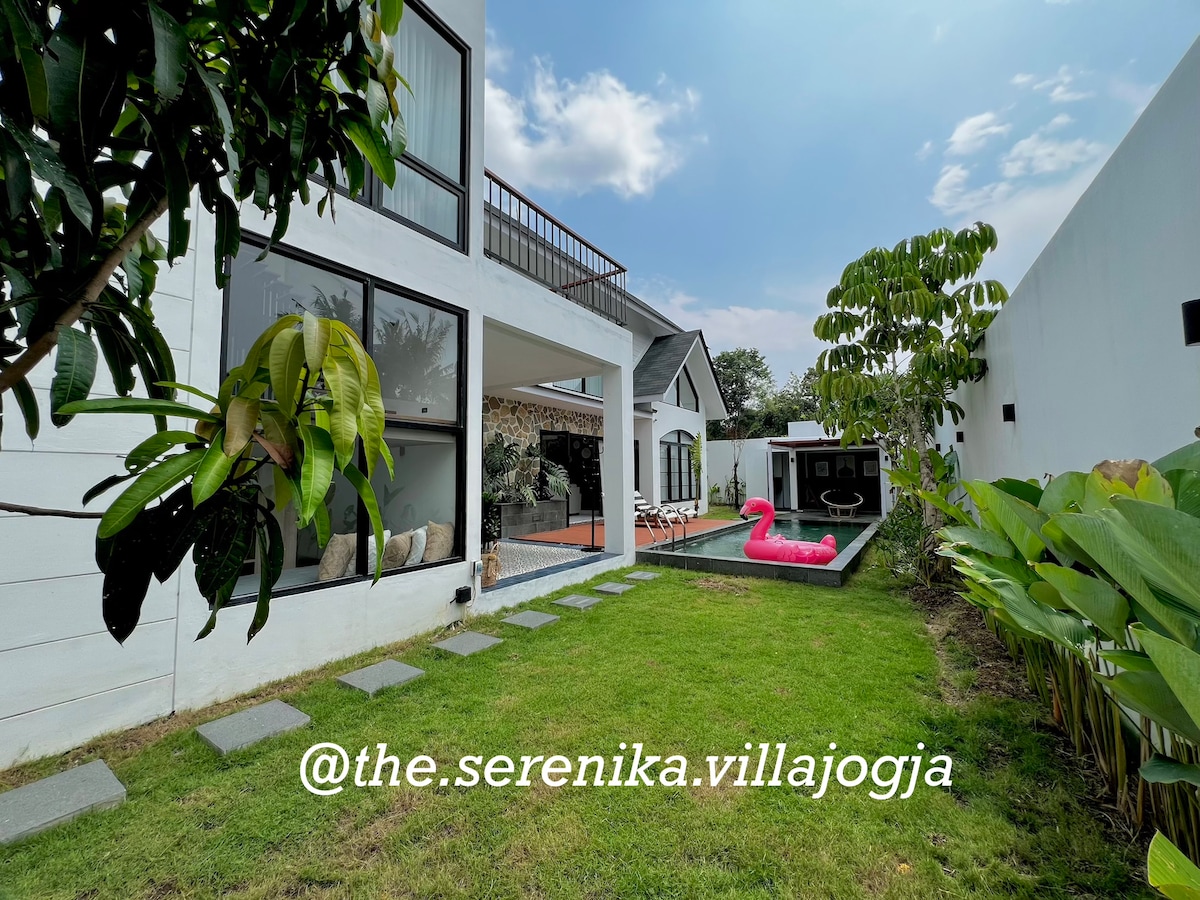 🏡 Privat villa – Leje af hele ejendommen Den viste pris er for hele villaen, ikke per værelse. Under dit ophold er hele ejendommen udelukkende din – ingen andre gæster vil være til stede. Med 8 rummelige soveværelser, en stor pool på 15x9 og 1.400 m² boligareal er der plads til op til 20 gæster. Kun 3 km fra byen og 20 minutter fra Yogyakartas centrum. Perfekt til familier, venner eller retreats, omgivet af tropisk ro og komfort. 🌴✨