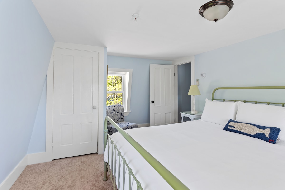 Kom og bo i yndefuld komfort i Franklin-værelset på vores charmerende traditionelle bed and breakfast fra 1845, strategisk beliggende mellem Acadia National Park og Mt Desert. Vi tilbyder et soveværelse med en queensize-dobbeltseng og valgfri enkeltseng med et fælles badeværelse lige ved siden af. Derudover er der sengetøj, badekåber, hårtørrere og toiletartikler. Morgenmaden er til din smag, og de fleste kostbehov imødekommes.