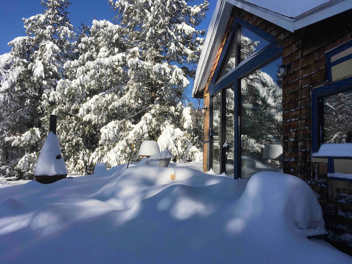 Denne luksuriøse A-rammehytte ligger i den fredfyldte skov i Saugerties i New York og tilbyder moderne komfort og naturlig skønhed. Kun 10 minutter fra Woodstock og 2 timer fra NYC, NJ. Det ligger på en privat grund på 2 hektar. Nem adgang. Med førsteklasses Casper-dobbeltsenge, en Breville-espressomaskine, en 4K-projektor, et bålsted, grill, et cedertræsfyret boblebad og sauna. Hundevenlig! En hyggelig og stilfuld feriebolig i nærheden af vandreture, skiløb og de bedste spisesteder i Catskills. Besøg vores ig 'highwoodsaframe' for mere.