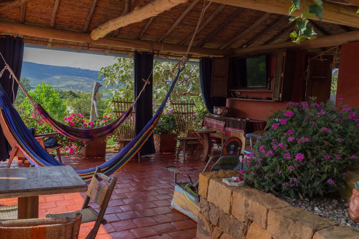 A five-star rated breathtaking place just outside the colonial village Barichara. Well connected by car or tuktuk (10 minutes) or a 45 min hike to the centre of Barichara. This one of a kind house is newly built, using a blend of traditional Colombian techniques (tapia pisada) and Dutch design. This results in a very comfortable and pleasant atmosphere. It offers two separate private bed- and bathrooms, whereas the living area is semi-open offering a stunning view over the valley and the Andes.