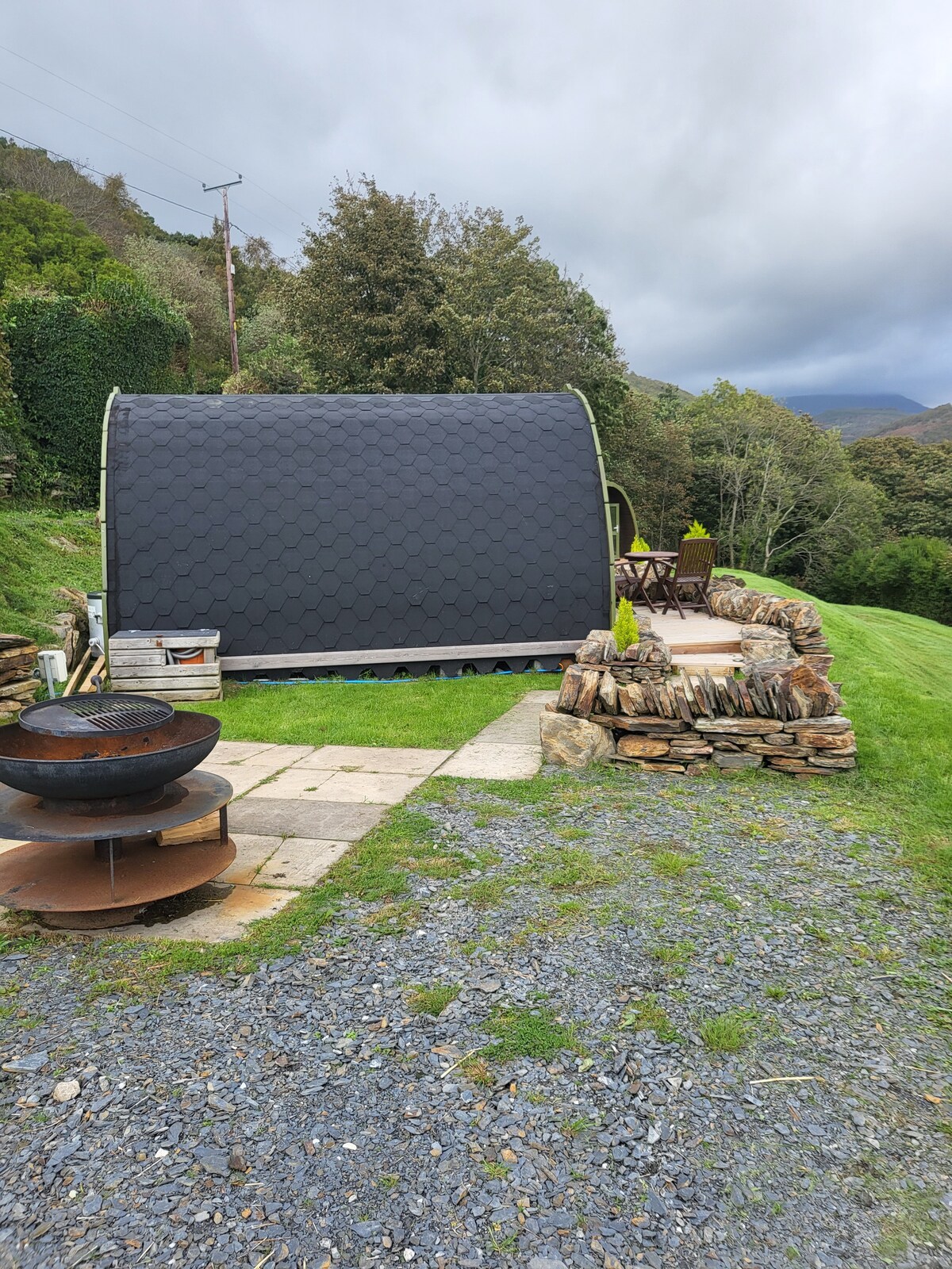 *Hvis datoerne ikke er ledige, skal du tjekke datoerne på vores tvillingehytte Idris!* Læn dig tilbage, og slap af i disse rolige omgivelser med udsigt over Afon Mawddach-flodmundingen og Cader Idris. 1,5 km fra kystbyen Barmouth, hvor du kan besøge lokale butikker, caféer, barer, restauranter eller tilbringe dagen på Barmouth-stranden. Gå i bjergene, se vandfald og det historiske Harlech slot, og slap derefter af i dit varme spabad med træbrænder! *Læs om spabadet, inden du booker*
