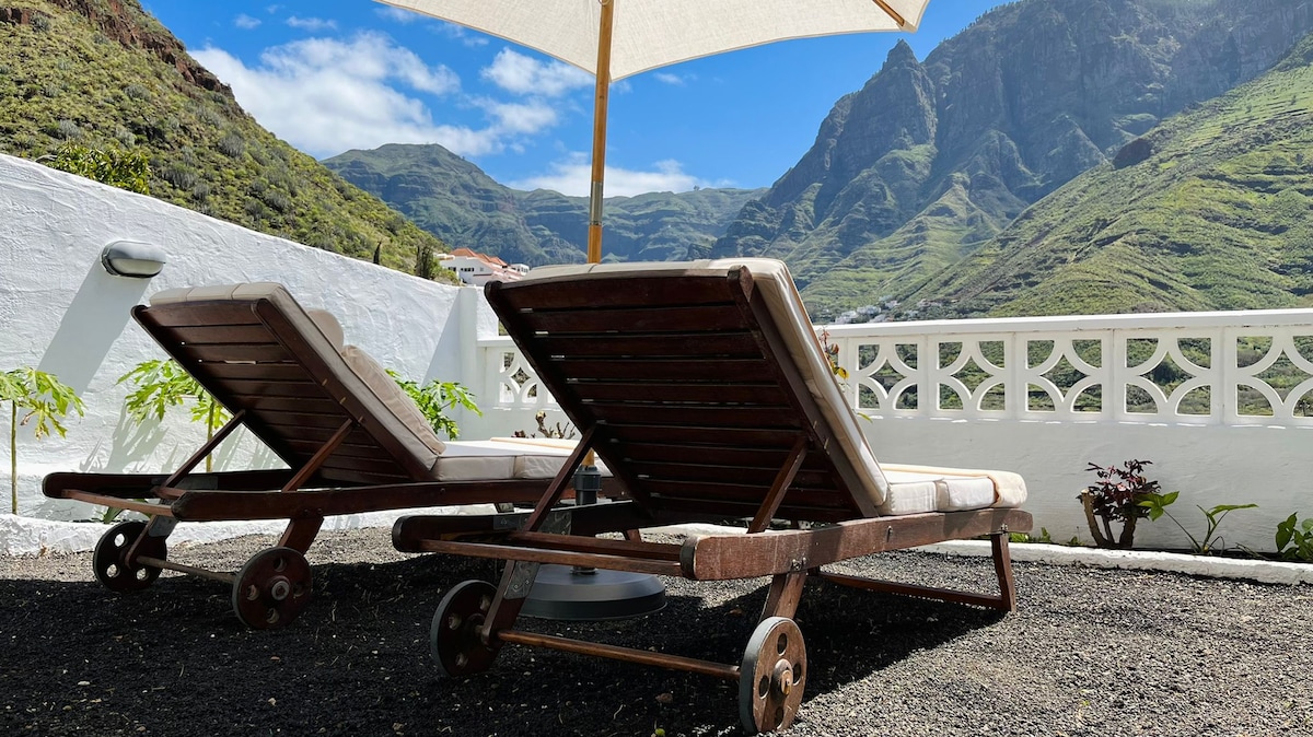 Opdag et Eden i Agaete - hus med have og fantastisk udsigt. Velkommen til en helt unik oplevelse. Dette hus fængsler dig med sin skønhed, ro og betagende panoramaudsigt over Agaete. Her står tiden stille, mens fuglene synger i haven, og Agaete-landsbyen udfolder sig foran dine øjne. Nyd det dybblå hav og Teides majestæt fra din hyggelige seng. Oplev uforglemmelige daglige solnedgange.