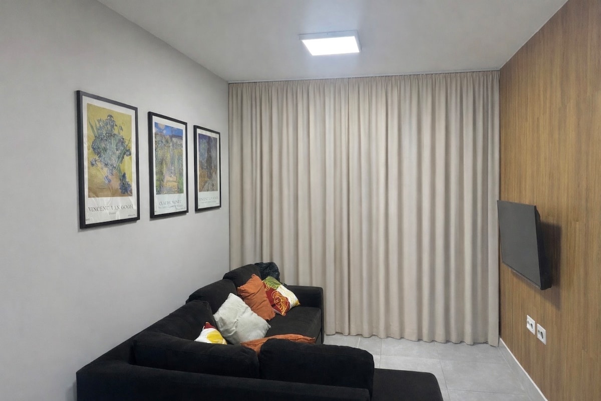 Komplet lejlighed i lukket lejlighedskompleks med fremragende struktur og beliggenhed, i et sikkert kvarter tæt på Alphaville. Studiet har hurtigt internet, Android-tv, køkken, queensize seng, minibar, sengetøj, håndklæder, hårtørrer, husholdningsartikler og parkeringsplads. Lejligheden har en vaskeri, et 24-timers minimarked, en swimmingpool, et fitnesscenter og en 24-timers reception. I nærheden af restauranter, bageri, burgerbar, pizzeria, barer, apotek, marked, alt meget tæt på uden brug for bil.