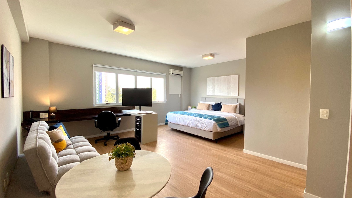 Dette er et meget specielt sted, der ligger på regionens hovedgade, tæt på alt, banker, apoteker, restauranter, tre store indkøbscentre (Iguatemi, Tamboré og Alphashopping, sidstnævnte ligger på den anden side af gaden), et indkøbscenter med utallige tjenester og butikker. Det har også en opvarmet pool og fitnesscenter, der giver følelsen af ro i et hjem og komforten af et hotel.