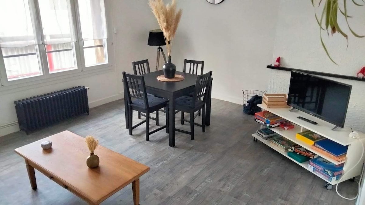 Charmerende studiolejlighed beliggende i centrum af Boulogne-sur-Mer ,med direkte adgang til mange butikker og restauranter, 3 minutters gang fra havnen og 7 minutter fra Nausicàa og stranden. Nærhed til museumsslottet, katedralen og voldene i den gamle bydel. Lejligheden er fuldt udstyret , den har 2 tv'er , et køkkenområde med mikrobølgeovn og wi-fi. Jeg hjælper dig gerne med eventuelle anmodninger eller yderligere oplysninger. Pascal