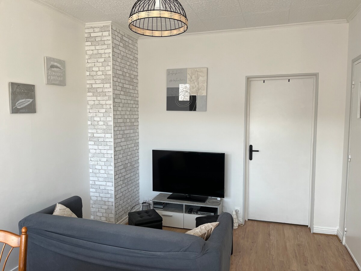 Nyd en elegant, behagelig 50 m2 lejlighed bestående af: 1 indgang, 1 stue (gratis fiber-tv), 1 soveværelse og 1 badeværelse. 1 sikker parkeringsplads 250 m væk. Beliggende i byens centrum, på første sal i en dejlig sikker bolig, i en travl gade, tæt på turistattraktioner som NAUSICAA, den gamle bydel, strand, havn og togstation (inden for 15 til 20 minutters gang). Tæt på alle butikker, markeder, biograf, teater, caféer/barer og restauranter osv...