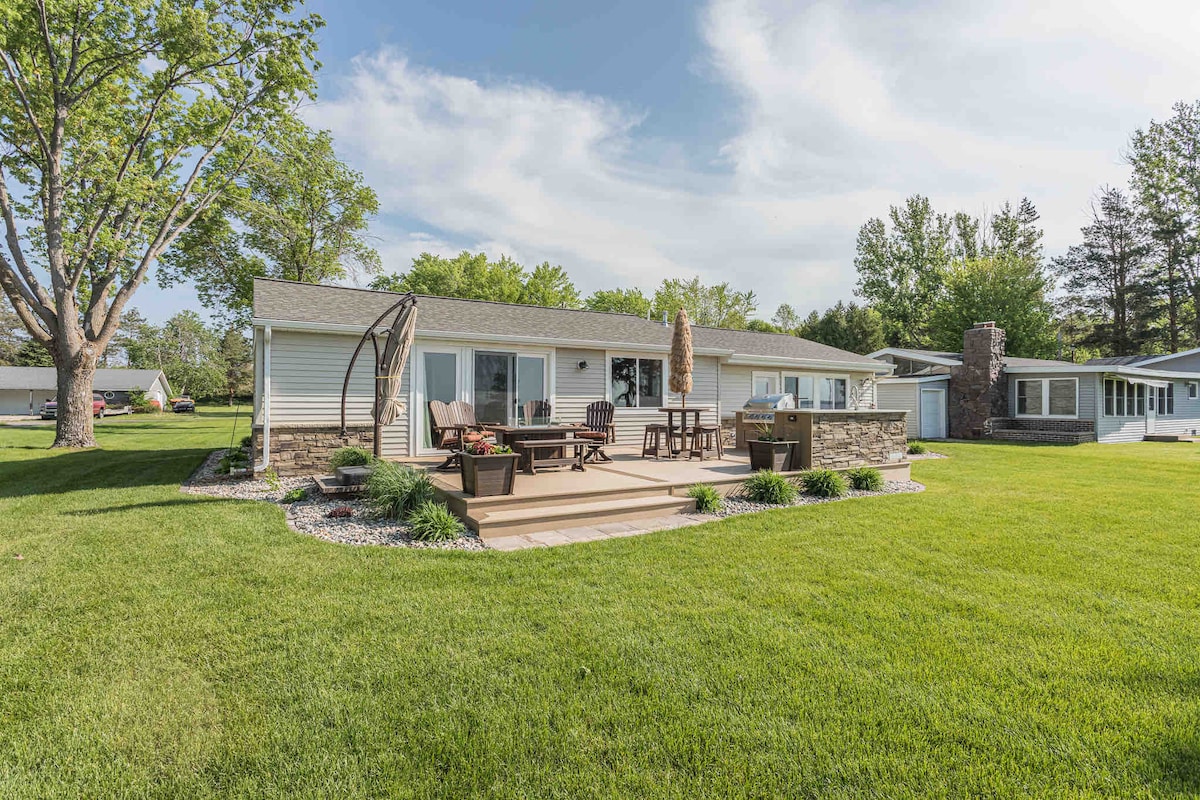 Nyrenoveret og smuk vestvendt søhus med over 120 fod privat kystlinje på Otter Tail Lake. Denne bolig har plads til 14 personer og har alt, hvad du skal bruge for at få dig til at føle dig hjemme. Otter Tail Lake er en af de største i Minnesota med en hård sandbund. Nyd at svømme ud fra den helt nye kaj i det krystalklare vand, stå på paddleboard, eller nyd de fascinerende solnedgange, mens du sidder i spabadet! Et hjem væk fra hjemmet!
