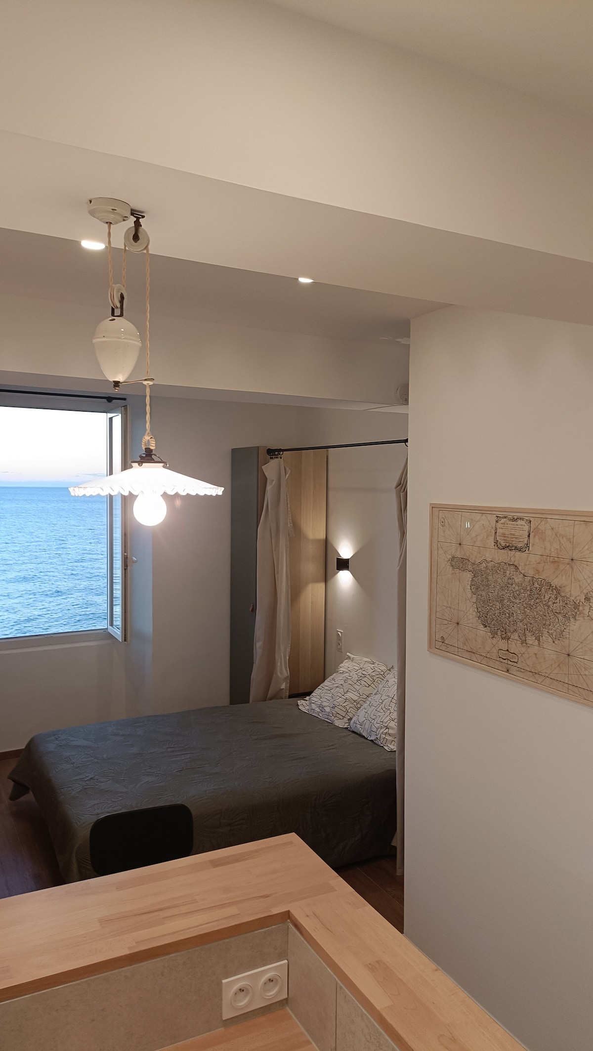 Lejlighed på 70 m² i den gamle bydel, fuldstændig renoveret, på første sal (uden elevator) i en bygning med udsigt over havet. Smukke rum med buede lofter, der tilbyder en fantastisk udsigt over havet, friskheden af gamle bygninger med tykke mure, nærheden (5 minutter til fods) af en lille lokal strand, letheden af en offentlig parkering, butikker og det historiske centrum af Citadellet (3 minutter), vil bidrage til et charmerende ophold i hjertet af Bastia.
