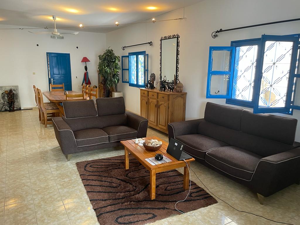 Beliggende i et roligt og sikkert område i SALY, 3 minutter fra havet, tilbyder denne fredelige bolig et afslappende ophold for hele familien. En vicevært står til din rådighed døgnet rundt Den blå villa består af 03 soveværelser (herunder 02 aircondition med dobbeltseng og 01 ventileret); en stor stue udstyret med amerikansk køkken; en swimmingpool i en have med en behagelig terrasse til grill og familiespil.