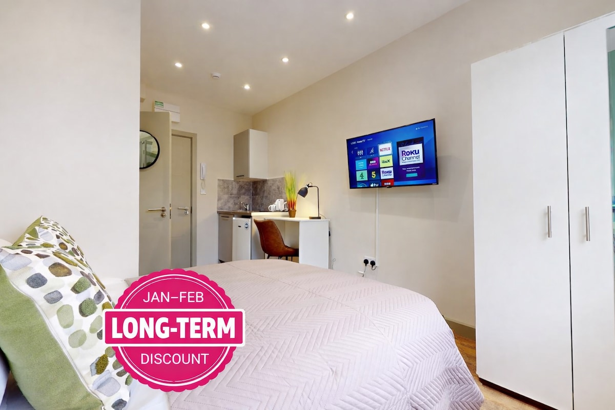 5 ud af 5 i gennemsnitlig bedømmelse, 4 omtalerLængerevarende•V/D•Smart-tv•Indtjekning uden vært•Skrivebord•Hurtig wi-fi