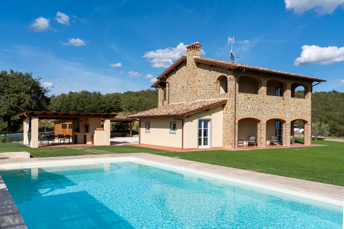 Nell’affascinante campagna Toscana,tra ulivi e vigneti una villa in pietra,in posizione strategica per cogliere i segreti di Toscana e Umbria aria condizionata e piscina con area wellness per il vostro relax e confort Villa Senaia è una grande casa con travi in legno, in una splendida posizione in collina con vista idilliaca che affaccia su uno dei luoghi preferiti della campagna toscana, un ambiente attraente per mangiare all'aperto, bevendo vino toscano e ascoltando i grilli e le cicale