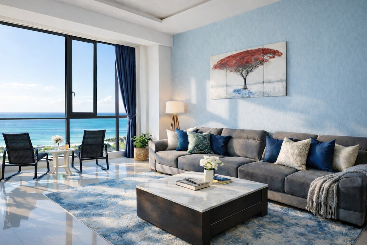 🌞SOL+🏖STRAND+🌊HAV VED HAVET 欢迎入住坐落在槟城著名的峇都丁宜海滩的精品海边公寓! Nyd livet ved stranden langs samme kystlinje som Hard Rock og ParkRoyal. Vågn op til fantastisk havudsigt, og slap af i et smukt designet rum med dristige farver, naturligt lys og hyggelige boutique-vibes. Gåafstand til Ferringhi Beach og nattemarked. Pool, fitnesscenter og nem adgang til de bedste steder i Penang. Perfekt til familier, par og strandelskere. Slap af, og nyd det bedste af Penangs kystlinje.
