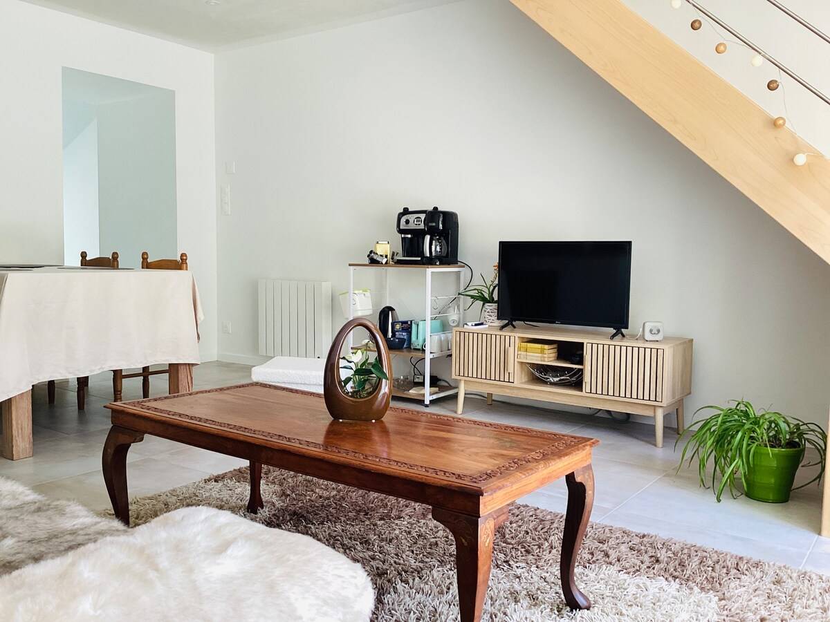 Studio på 30m² i vores hus, lavet om i 2022. Til 3 eller 4 personer. 1 seng 140 x 190 + 1 sovesofa, et badeværelse med bruser og badekar, et udstyret køkken. Der er sengetøj og badehåndklæder. Gratis parkering. Babyseng og høj stol kan lånes efter anmodning. 5 minutter i bil fra centrum af Baud og den 4-sporede vej. 10 minutter i bil fra Clos du Grand Val. Du har en del af terrassen med et bord til udendørs spisning og adgang til haven.