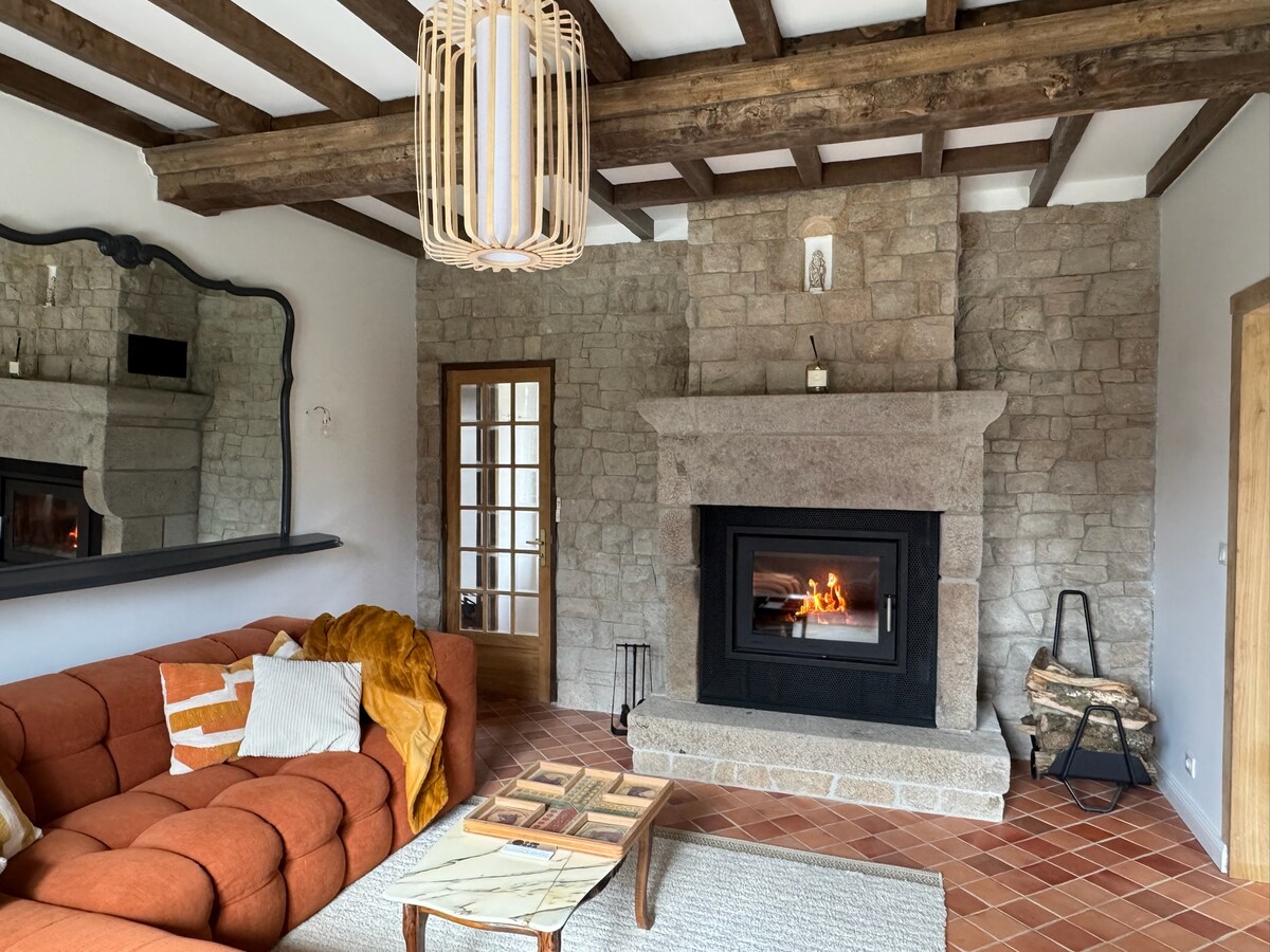 Komfortabel indkvartering møbleret på gården, meget rummelig (ca. 90m²) og rolig midt i Vire-dalen. Du vil blive indkvarteret i et stort komfortabelt rum på landet, omgivet af dyr fra gården og 200 meter fra Vire med panoramaudsigt over Vire-dalen. Kanobase i nærheden. Et naturligt og bakket sted for natur- og dyreelskere. Perfekt til vandreture, cykling, ridning... Mulighed for at tage imod to heste på engen.